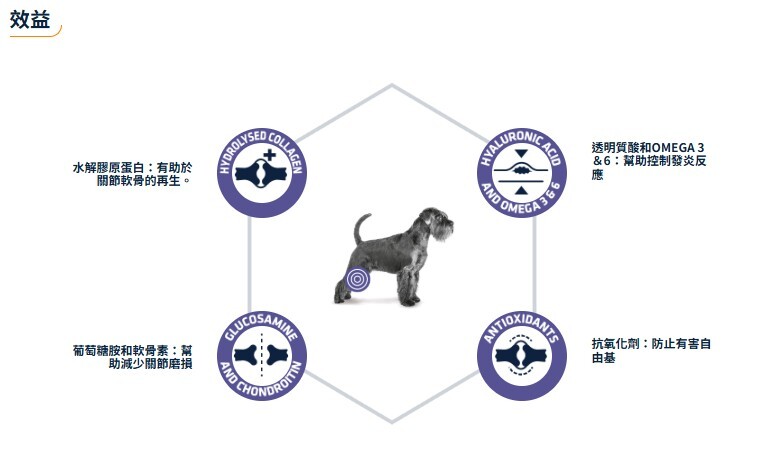 是一種用於狗的完整均衡的營養產品,旨在幫助康復並在患有關節疾病的狗在醫療中提供營養支持。